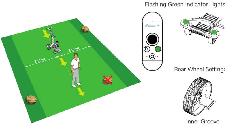 PLEASE NOTE: It is normal for the ForeCaddy to “weave” slightly while in Follow Mode. When encountering obstructions that may be close to this 15 foot-wide safety zone, reduce your walking speed. The cart will also slow down and will weave less.