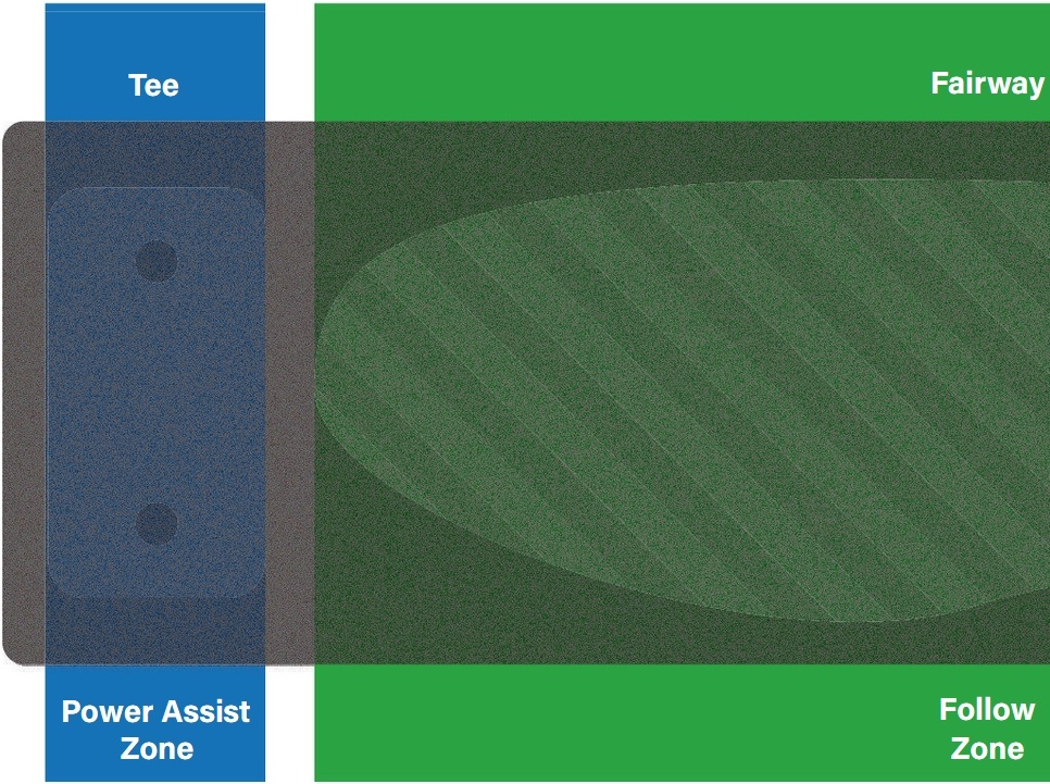 PLEASE NOTE: Only use the Follow mode on the fairway. Be sure to check your surroundings for any hazards. It is safe to use the manual push mode or Power Assist mode while using the ForeCaddy in the Tee area or around the Green.